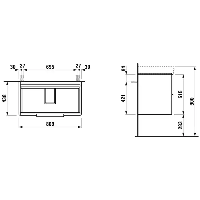 Laufen Base База с раковиной, 85x46см, подвесная, с 2 ящиками, цвет: белый матовый