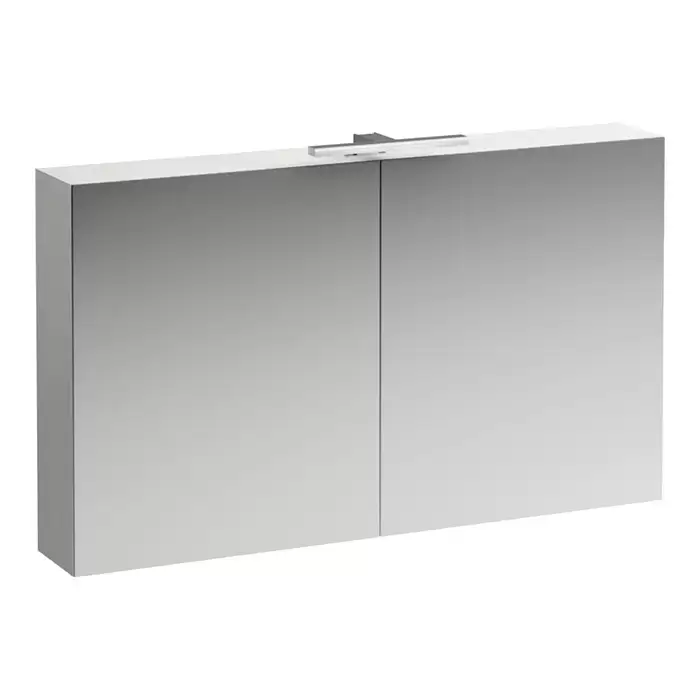 Laufen Base шкаф зеркальный 1200x185x700 мм, 2 дверцы, с горизонтальным элементом LED-подсветки, 2 стеклянные полки, 1 розетка, цвет: белый матовый