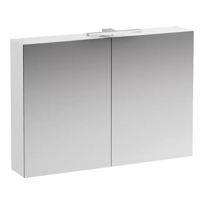 Laufen Base Шкафчик зеркальный 100x18.5x70см, 2 дверцы, с горизонтальным элементом LED-подсветки, 2 стеклянные полки, 1 розетка, цвет: белый матовый