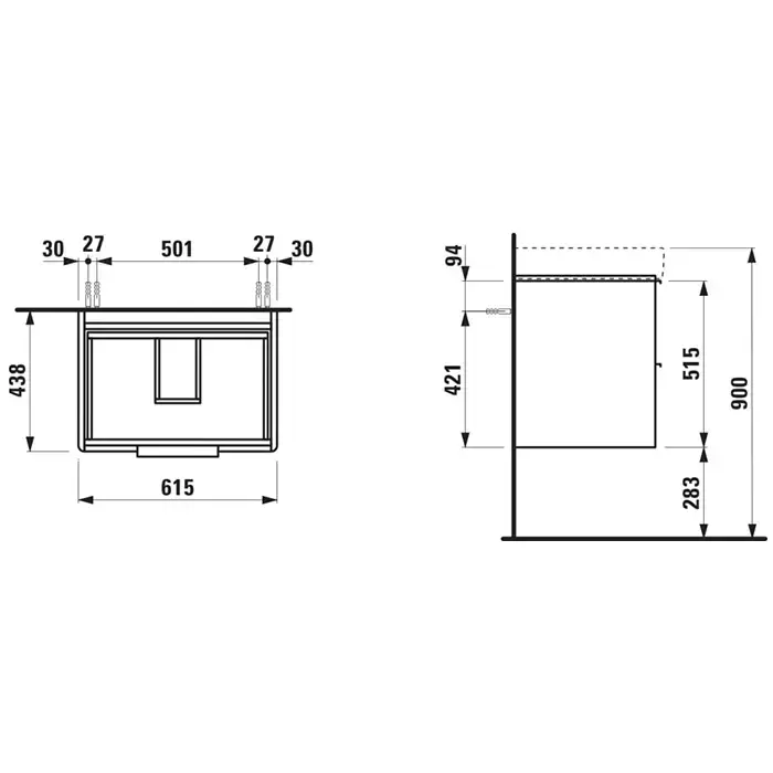 Laufen Base Тумба подвесная 65х46.5см, с раковиной, с 2 выдвиж. ящиками, цвет: белый глянцевый