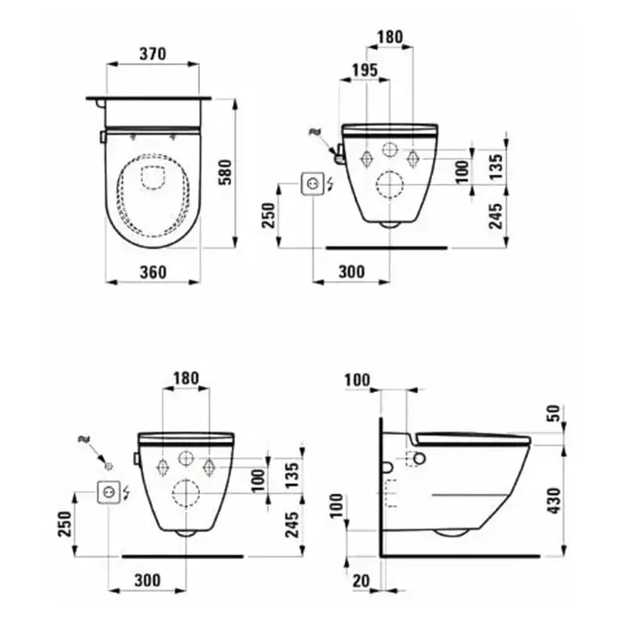 Laufen Cleanet Navia Унитаз-биде подвесной 58х37х38см, безободковый в комплекте с сиденьем, микролифт, цвет: белый
