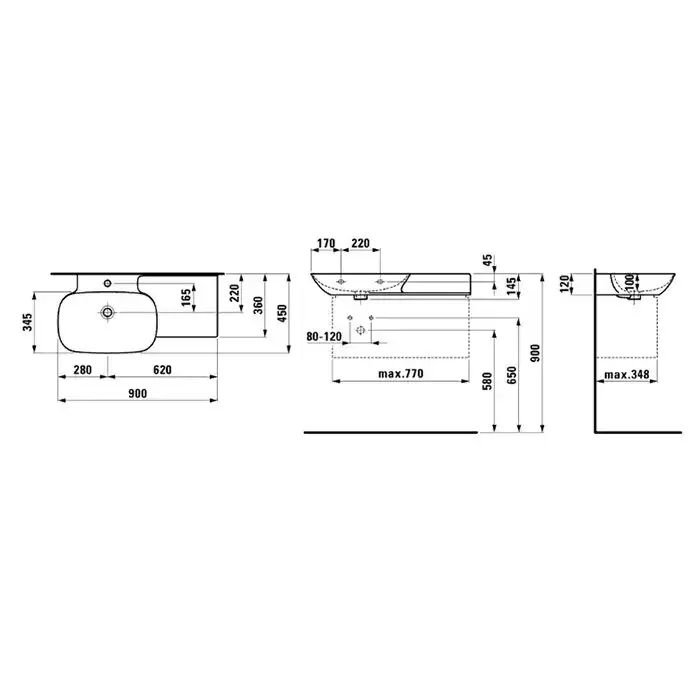 Laufen INO Раковина 90х45х12 см, без отв., полка справа, цвет: белый
