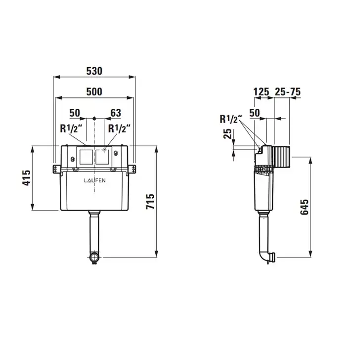 Laufen Installation System LIS бачок скрытый 53x20x72см для напольного унитаза, двойной смыв 6/3 л