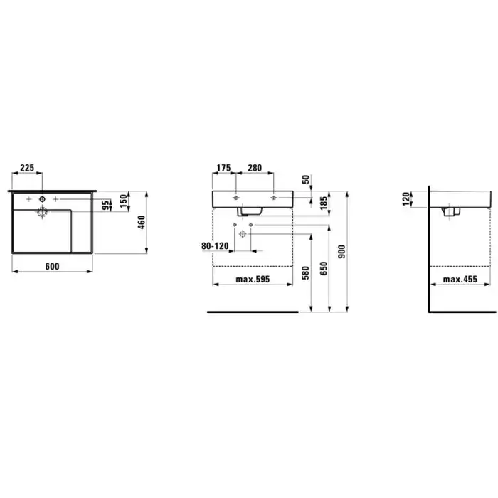 Laufen Kartell Раковина 60х46х12 см, 1 отв., без перелива, полка справа, цвет: белый