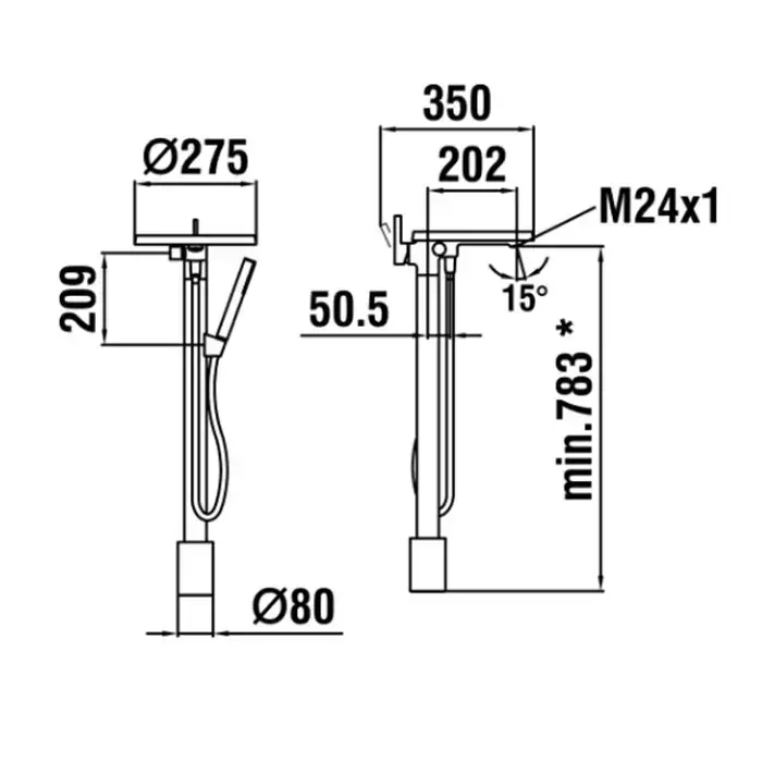 Laufen Kartell Смеситель для ванны на 1 отв, напольный с ручным душем, цвет: хром