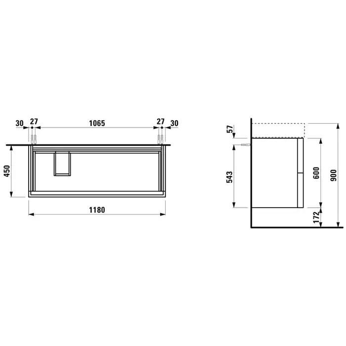 Laufen Kartell Тумба с раковиной, 118х45х60см., с 2 выдвиж. ящиками, с сифоном, с полочкой справа, цвет: белый матовый