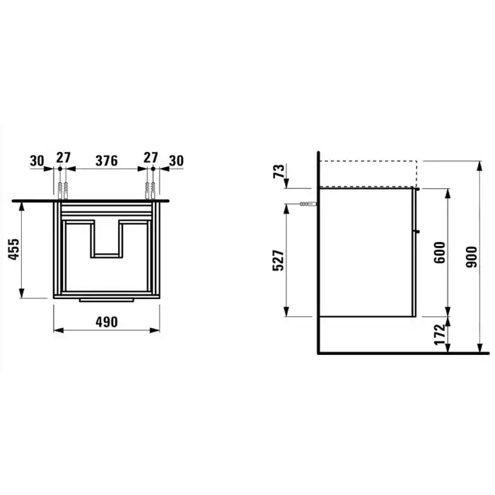 Laufen Kartell Тумба с раковиной, 49х45.5х61.5см, с 2 выдвиж. ящиками, с сифоном, подвесная, цвет: серый матовый