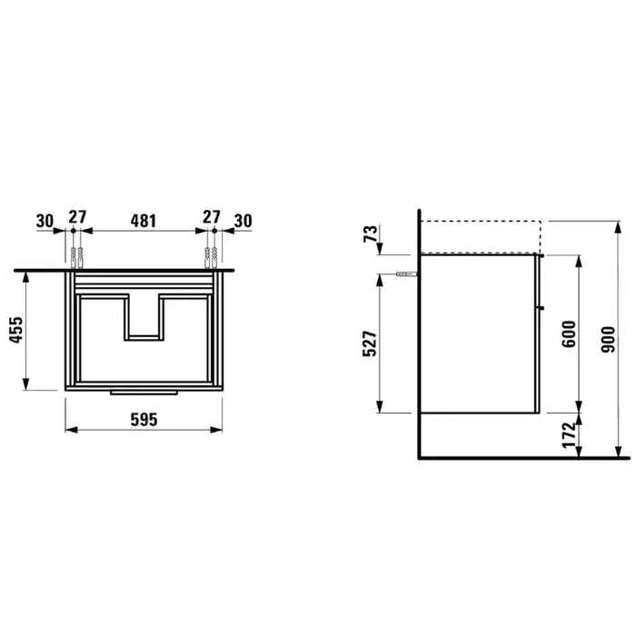 Laufen Kartell Тумба с раковиной, 59.5х45.5х61.5см, с 2 выдвиж. ящиками, с сифоном, подвесная, покрытие LLC, цвет: белый глянцевый