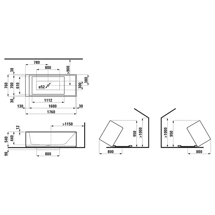 Laufen Kartell Ванна 176x76x44см., свободностоящая, композит, цвет: белый