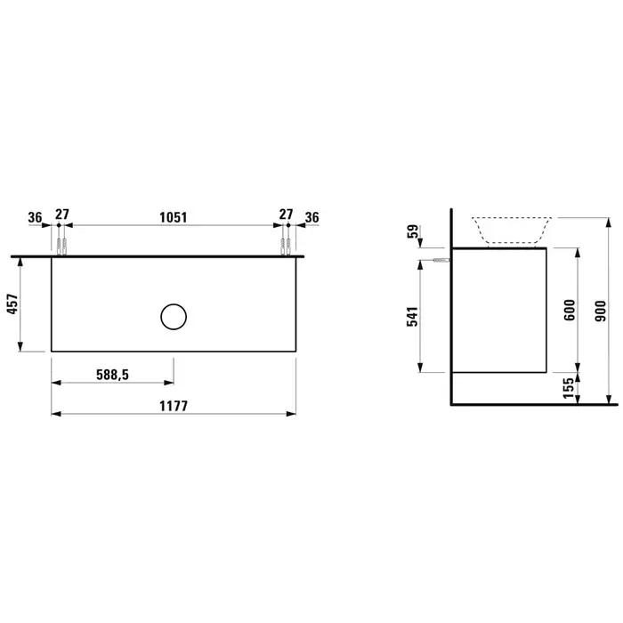 Laufen New Classic Тумба с раковиной, 117.5х45.5х60см, 2 ящика, подвесная, цвет: серый