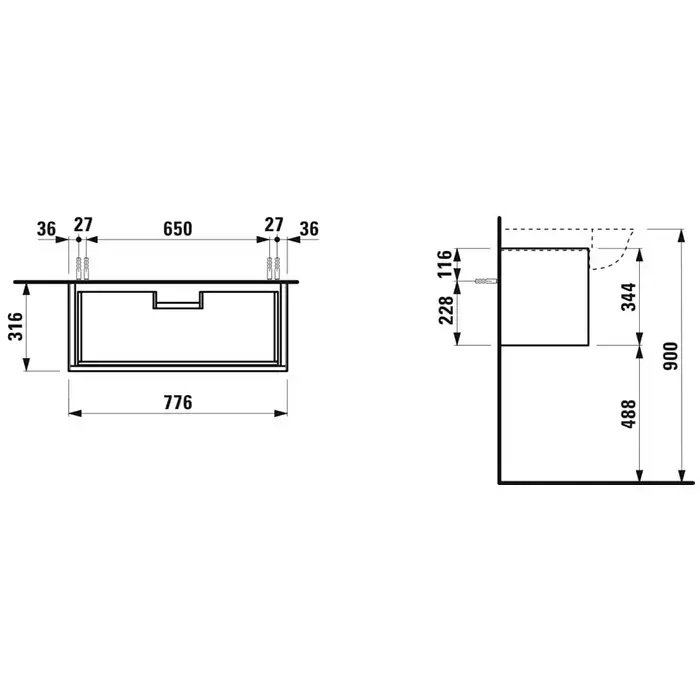 Laufen New Classic Тумба с раковиной, 77.5х31.5х67.5см, 2 ящика, подвесная, цвет: белый глянцевый
