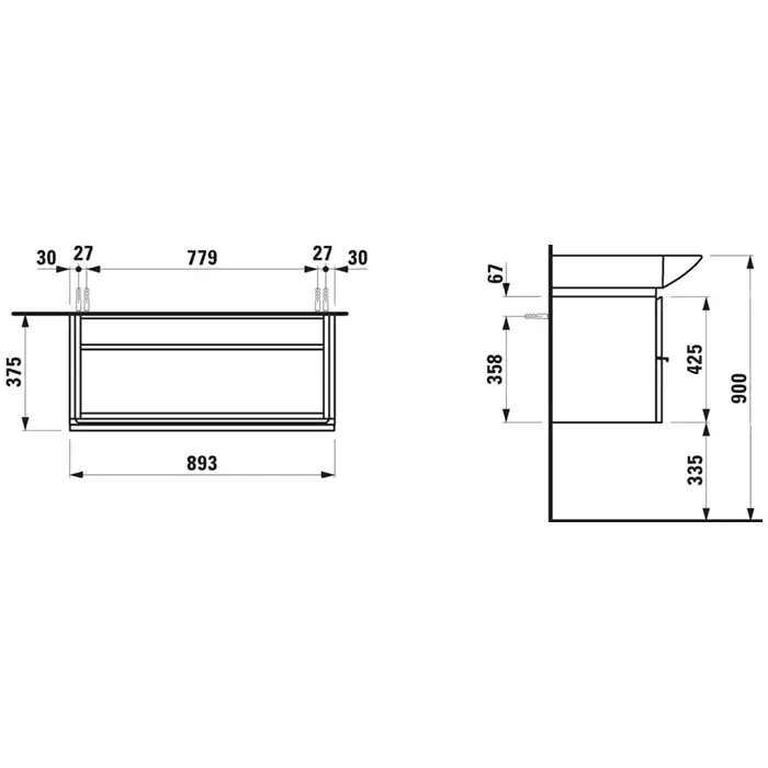 Laufen Palace Тумба подвесная 90x51cм., с раковиной, 2 ящика, с полотенцедержателем, цвет: белый матовый