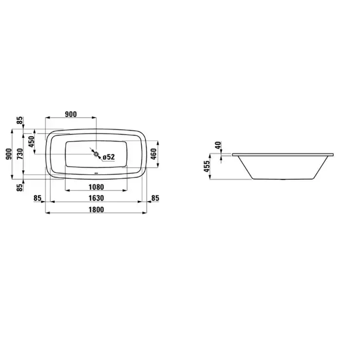 Laufen Palomba Ванна 180x90x45.5см, встраиваемая, без слив-перелива, материал: акрил, цвет: белый