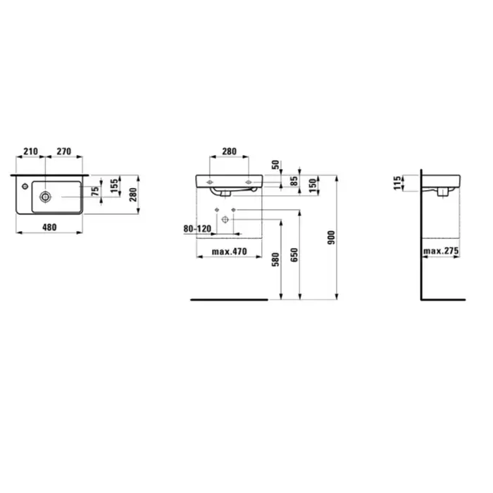 Laufen Pro S Раковина 48х28х85см., подвесная, SX, с 1 отв., цвет: белый