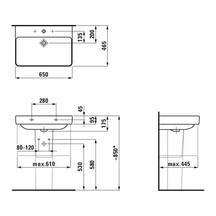 Laufen Pro S Раковина 65х46.5х9.5 см, 1 отв., подвесная/на столешницу, цвет: белый