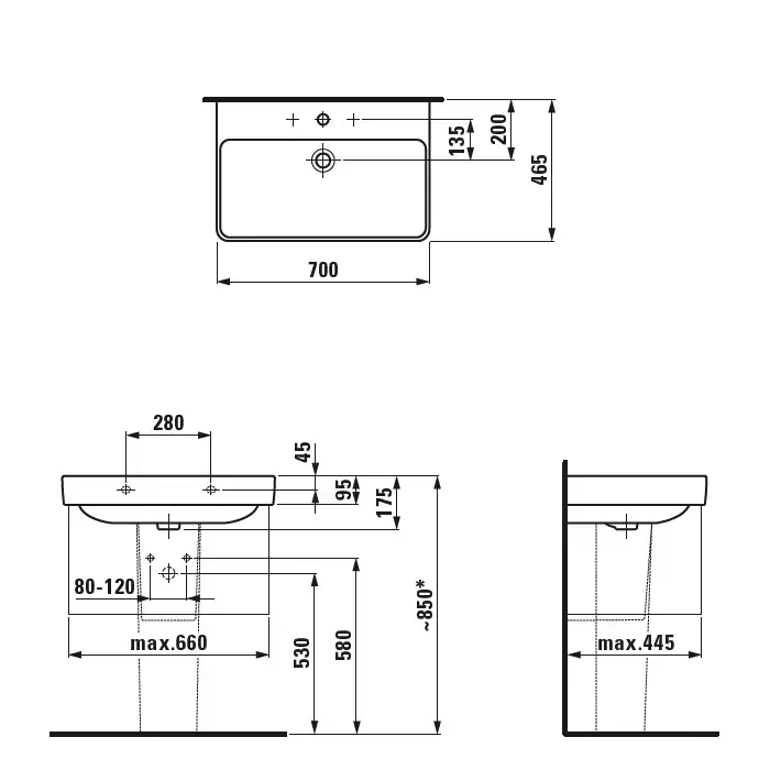 Laufen Pro S Раковина 70х46.5х9.5см., подвесная, 1 отв., с переливом, цвет: белый