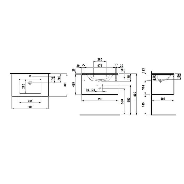Laufen Pro S Тумба с раковиной 80х50х46см, подвесная, цвет: белый глянцевый