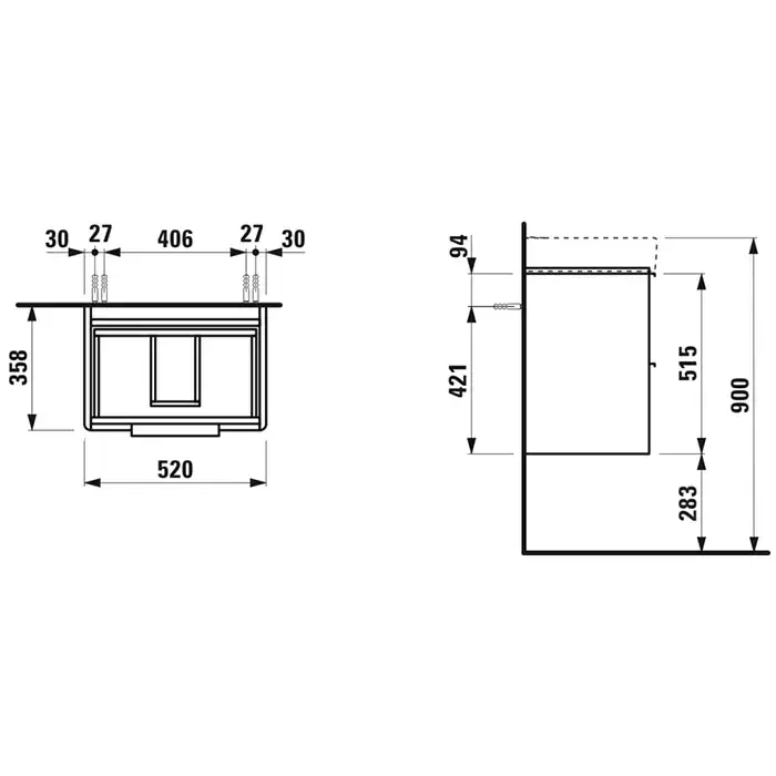 Laufen Pro Тумба с раковиной 52x36x53см., подвесная, 2 ящика, цвет: белый матовый