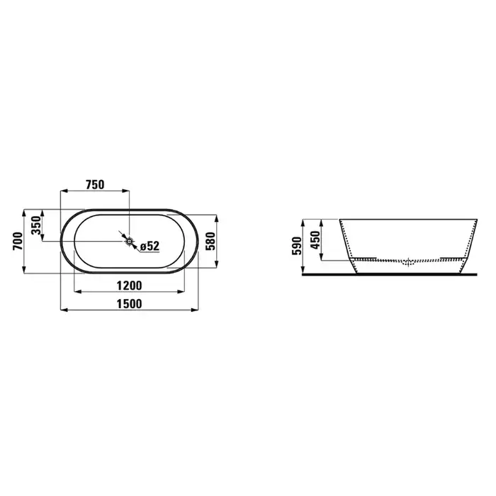 Laufen Pro Ванна отдельностоящая 150х70см., слив click-clack, цвет: белый