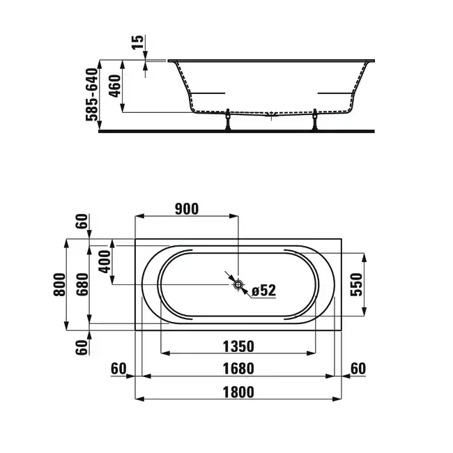 Laufen Pro Ванна встраиваемая, 180x80см., прямоугольная, цвет: белый