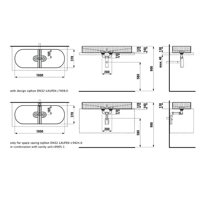 Laufen Sonar Раковина 100x37х13 см, без отв., двойная, без перелива,с наружным декором, цвет: белый