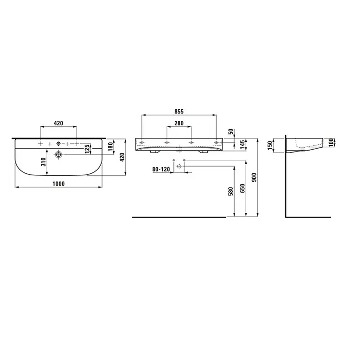 Laufen Sonar Раковина подвесная 100x42x14.5см., без отв., с переливом, цвет: белый