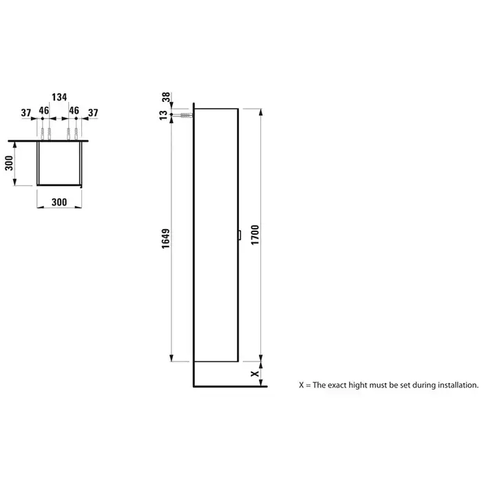 Laufen Space Шкаф высокий с фронтальным зеркалом 300x300x1700 мм, петли слева, темный вяз