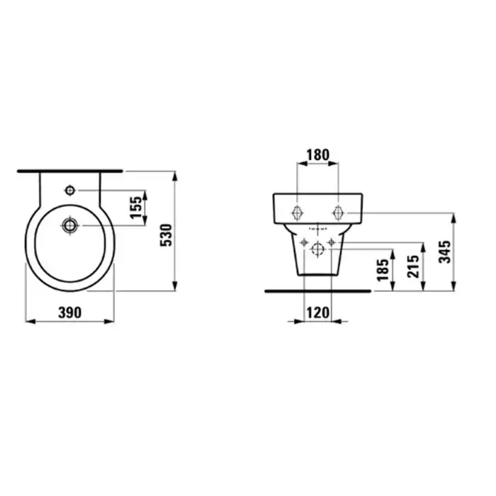 Laufen VAL Биде подвесное 53x39x43см, с 1 отв. под смеситель, без боковых отв, с покр. LLC, цвет: белый