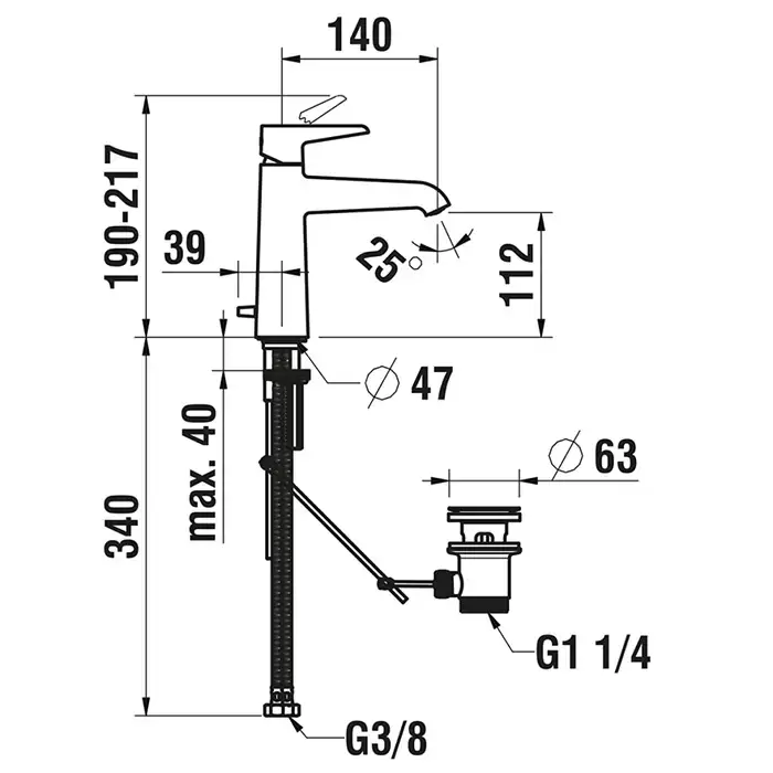 Laufen VAL смеситель для раковины, излив 140 мм, Eco+, с донным клапаном,цвет: хром