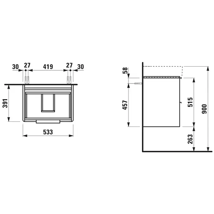 Laufen VAL Тумба с раковиной 53.5х39х53см., 2 ящика, с органайзером, подвесная, цвет: белый матовый