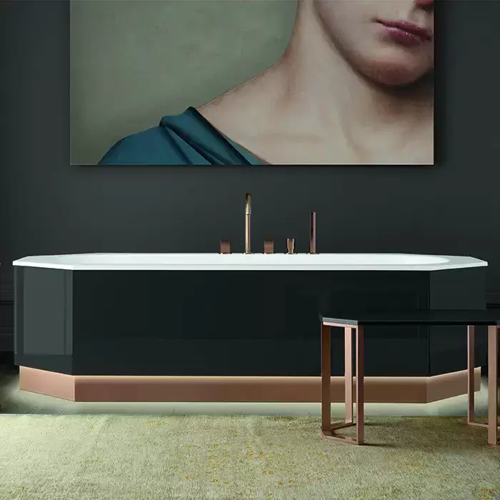 Milldue Edition Dandy Ванна 195х90х52см, отдельностоящая, с сифоном, с подсветкой, облицовка глянц Grafite, цоколь сатин роз зол, ванна белый