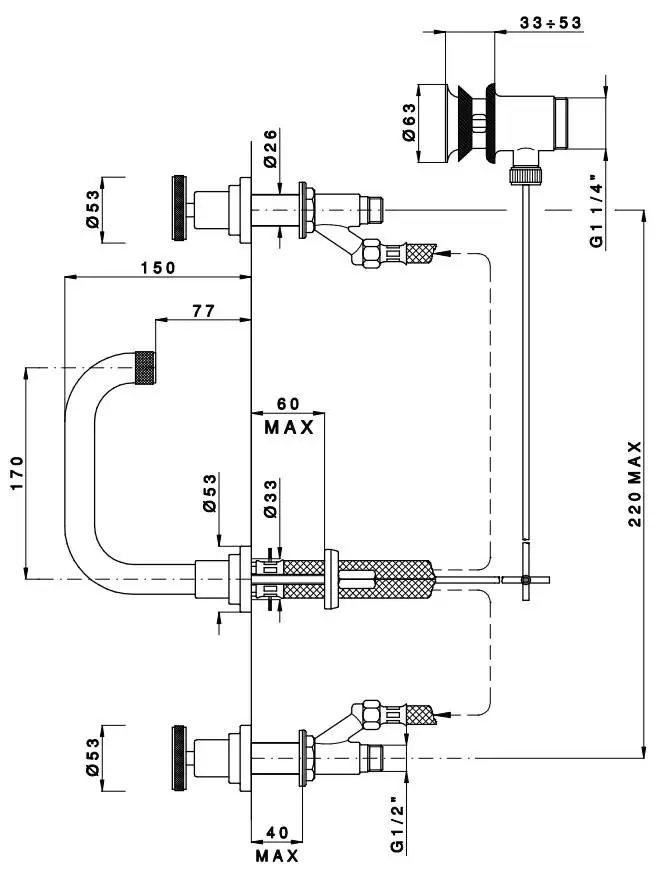 Nicolazzi Arena Смеситель для раковины на 3 отверстия, с донным клапаном, излив: 170 мм, цвет: хром