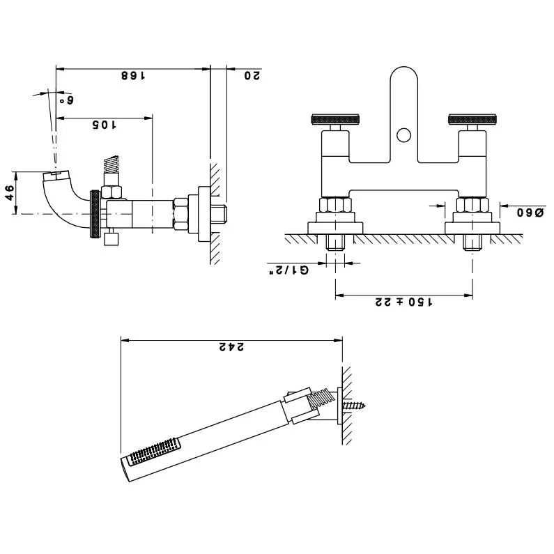 Nicolazzi Arena Смеситель для ванны с душем duplex настенный на 2 отверстия, излив: 168 мм цвет: хром