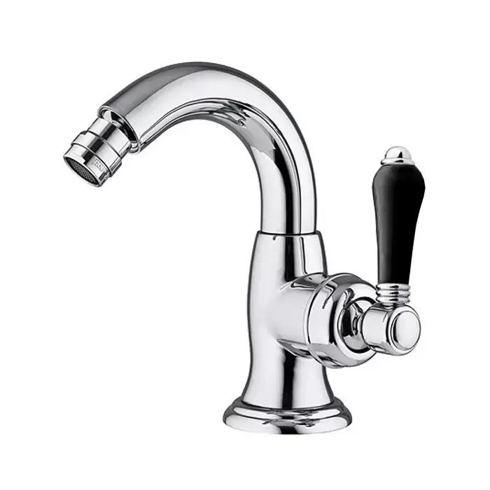 Nicolazzi Ceramica Nera Смеситель для биде, на 1 отв, с донным клапаном, излив: 132 мм, ручки черная керамика, цвет: хром