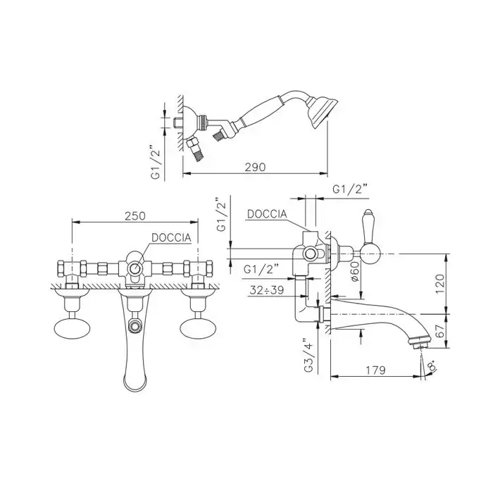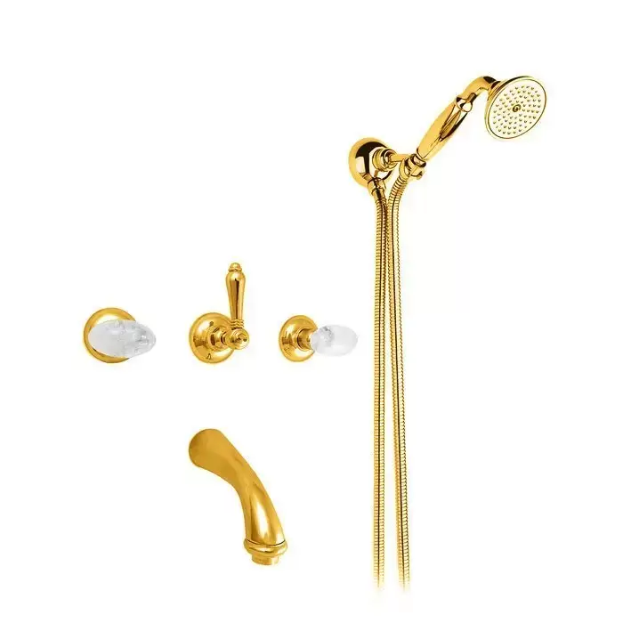 Nicolazzi Cristallo Di Rocca Смеситель для ванны с 2мя ручками, встроенный, вкл. внутр часть + комплект руч. душа, цвет: золото