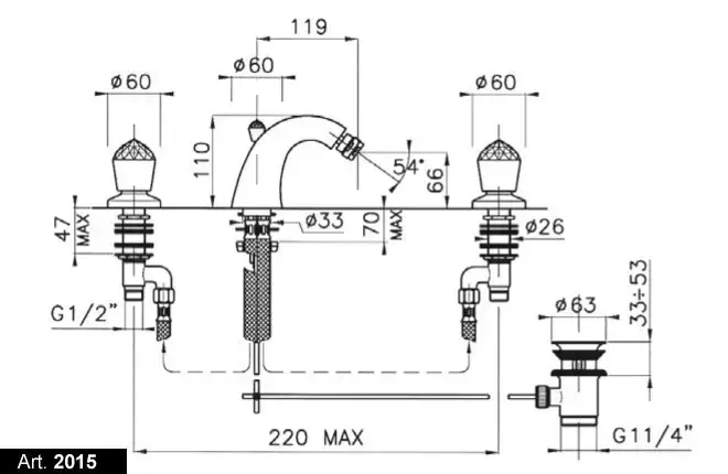 Nicolazzi Cristallo Смеситель для биде на 3 отверстия, излив: 119мм, цвет: золото