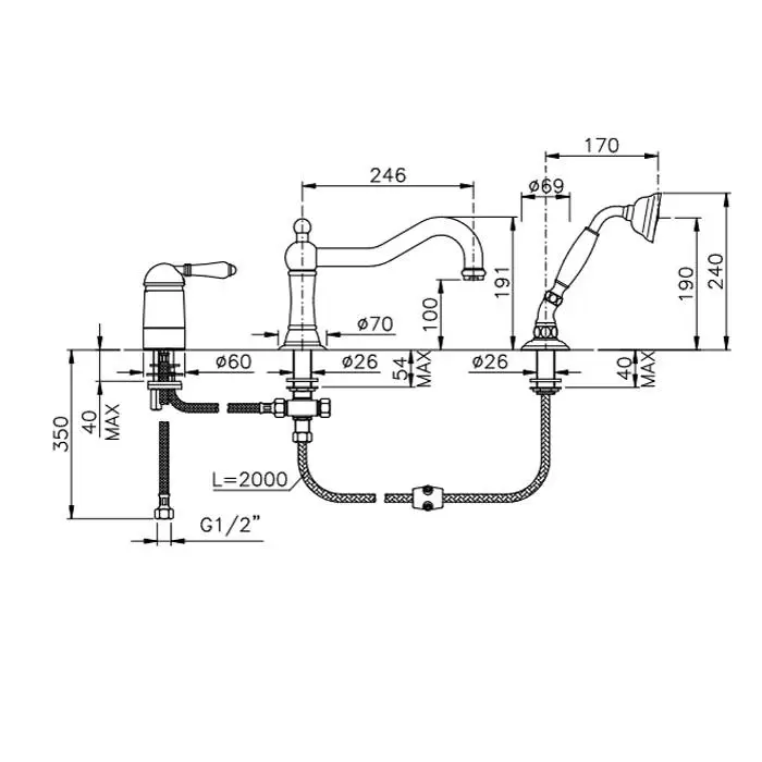 Nicolazzi Cristallo Смеситель на борт ванны на 3 отверстия, с изливом 246мм и ручным душем, цвет: хром