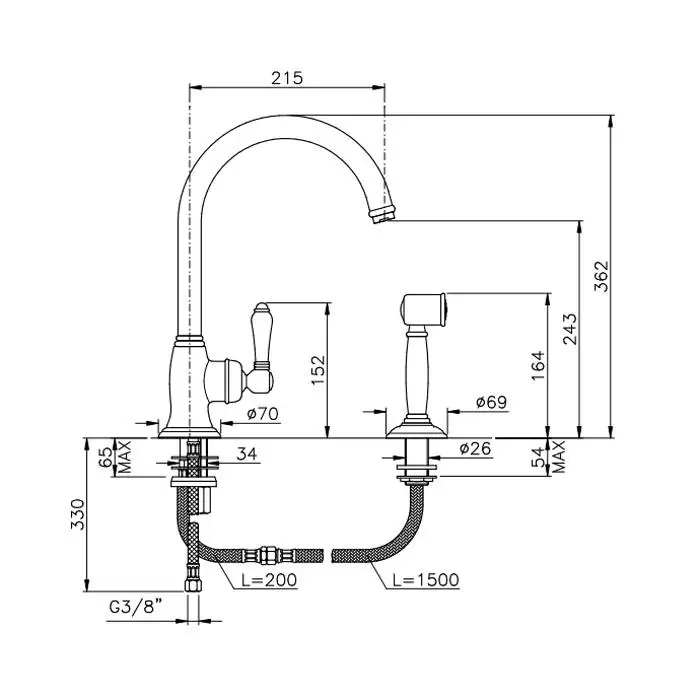 Nicolazzi Cucina Смеситель для раковины, однорычажный с поворотным изливом 215мм, на 2 отв, с лейкой, цвет: хром