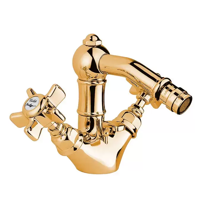 Nicolazzi Dames Anglaises Смеситель для биде с 2мя ручками, на 1 отв., с донным клапаном, излив 127мм, цвет: золото