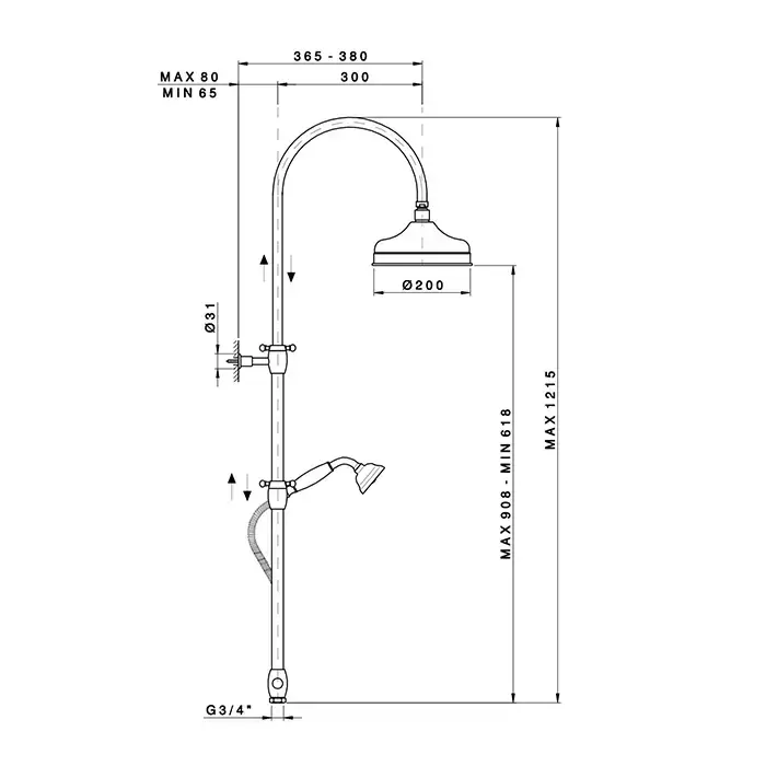 Nicolazzi Doccia Душевая стойка с лейкой 200 мм, переключателем и ручным душем цвет: Bronze Plated