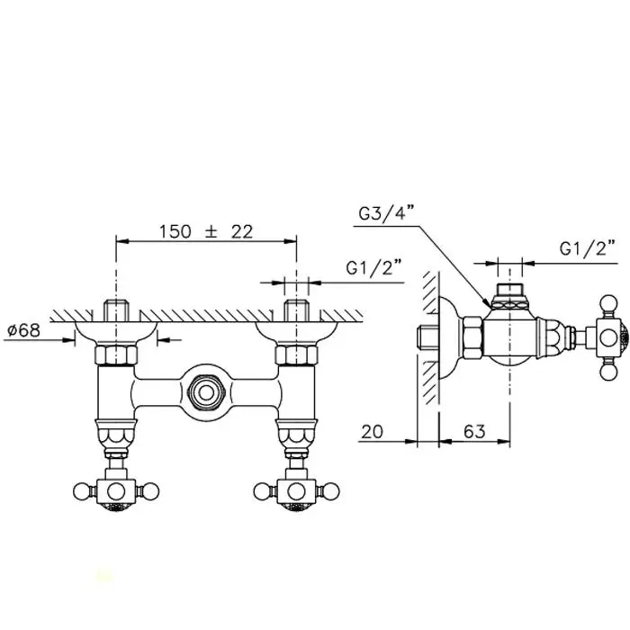 Nicolazzi El Capitan Смеситель для душа на 2 отверстия, вывод сверху 1/2" (без шланга и лейки), цвет: тёмная бронза