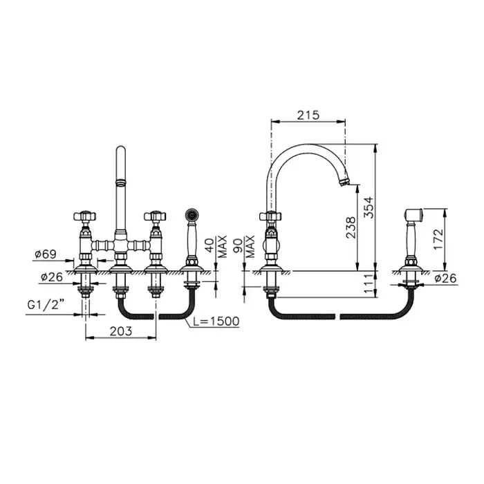 Nicolazzi El Capitan Смеситель для кухни, на 4 отв., с вытяжным ручным душем, цвет: Gold
