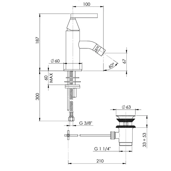 Nicolazzi Flag Смеситель для биде, на 1 отв., с донным клап, цвет: хром
