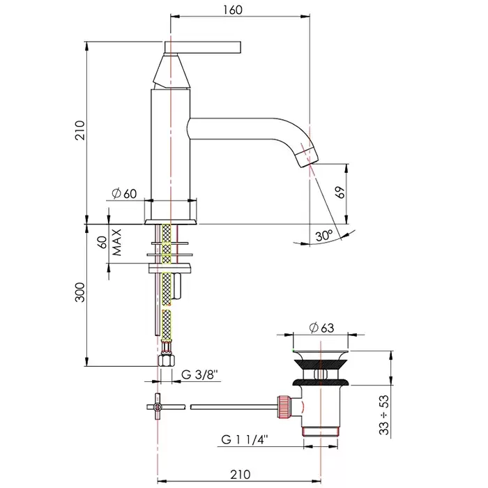 Nicolazzi Flag Смеситель для раковины, на 1 отв., с донным клап, цвет: хром