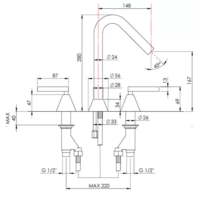 Nicolazzi Flag Смеситель для раковины, на 3 отв, h: 14.8см., цвет: хром