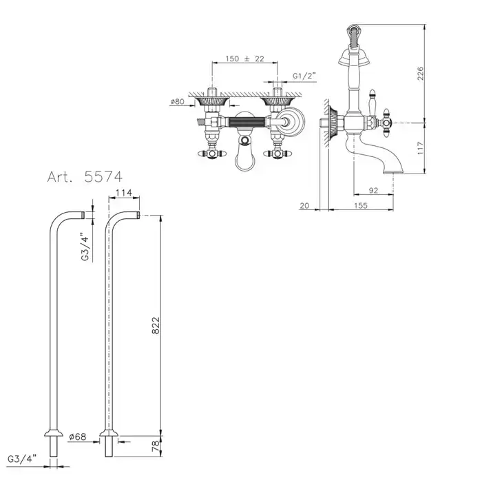 Nicolazzi Impero Смеситель для ванны с 2мя ручками, с переключателем ванна/душ, цвет: золото
