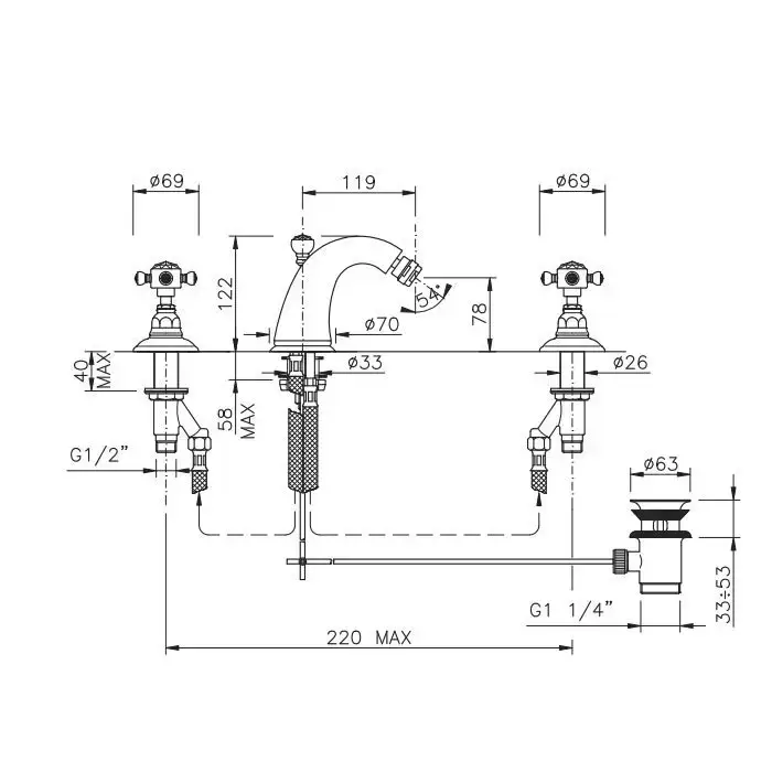 Nicolazzi Le Pietre Смеситель для биде на 3 отверстия, излив: 119мм, цвет: золото