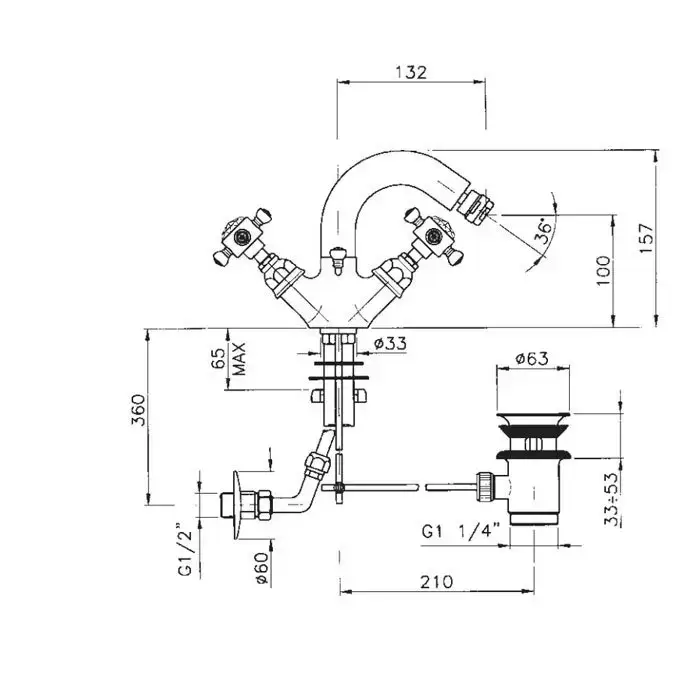 Nicolazzi Le Pietre Смеситель для биде с 2мя ручками, с донным клапаном, излив: 132мм, цвет: золото