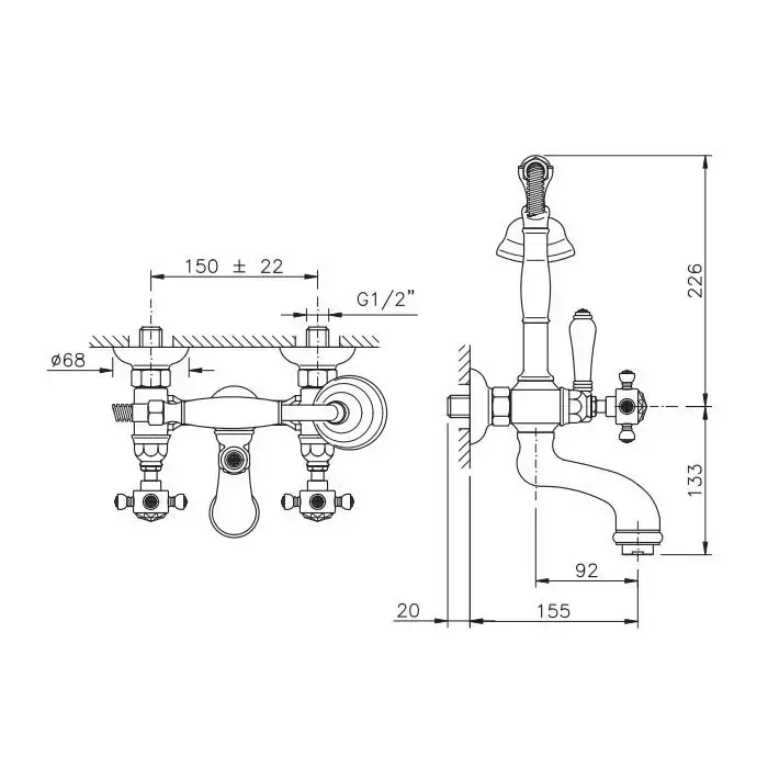 Nicolazzi Le Pietre Смеситель для ванны с 2мя ручками, с переключателем ванна/душ, цвет: хром