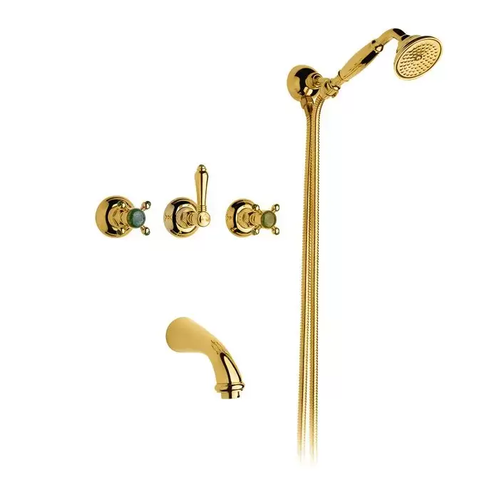 Nicolazzi Le Pietre Смеситель для ванны с 2мя ручками, встроенный, вкл. внутр часть + комплект руч. душа, цвет: золото